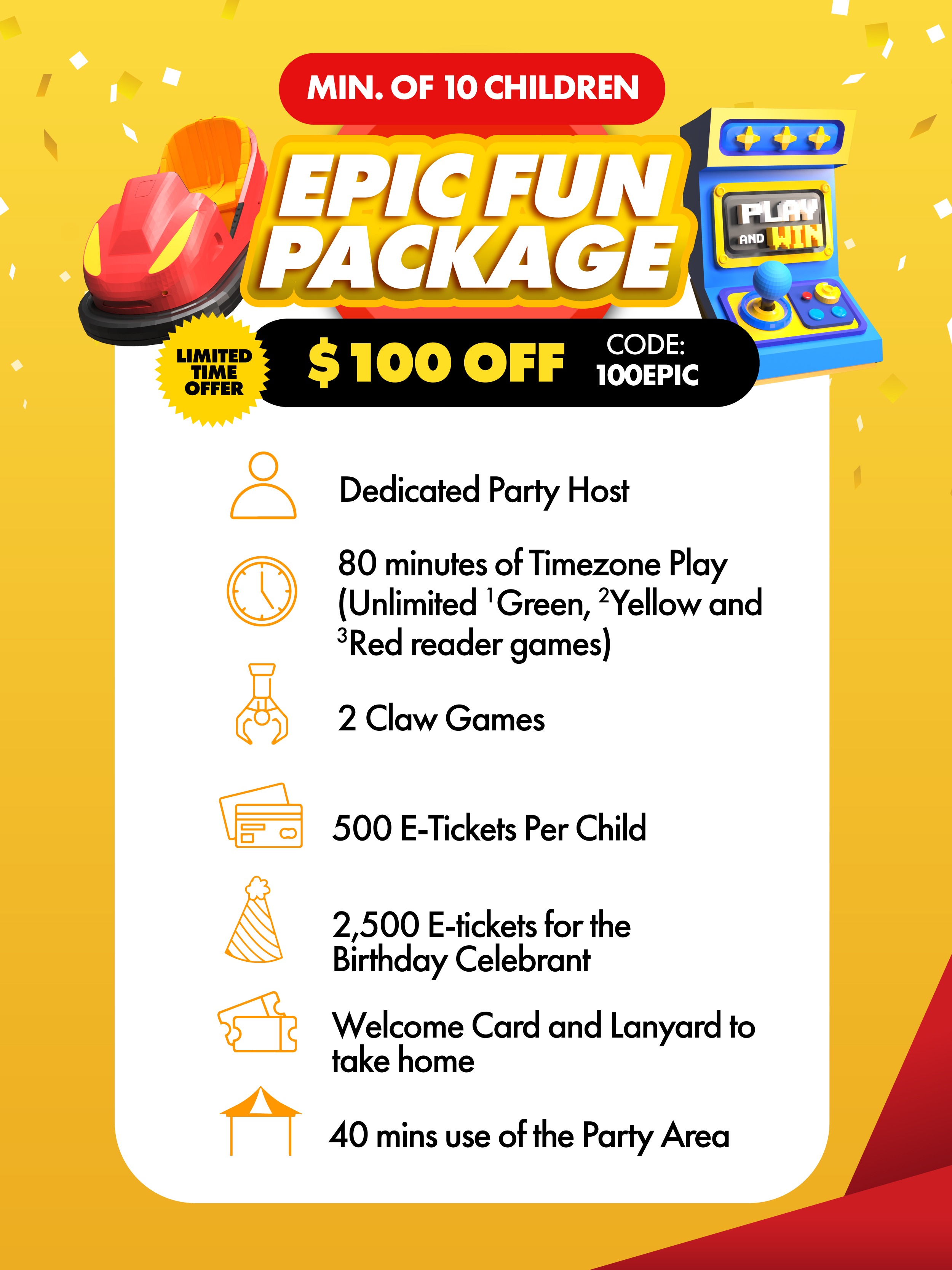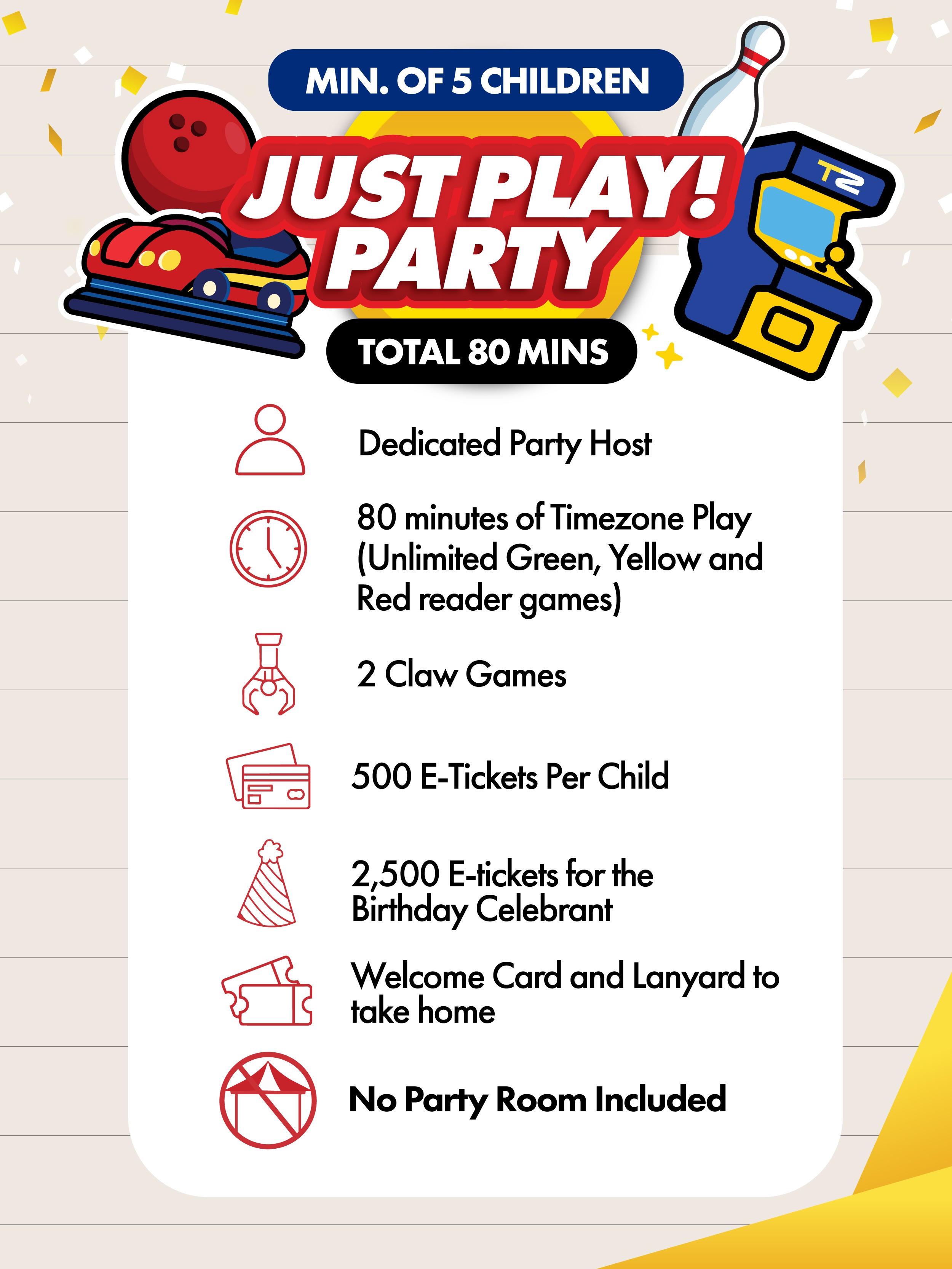 Make lasting memories with a party goodie bag for every child; it's a perfect takeaway to remember the fun-filled celebration! Note: Items in the goodie bags vary from time to time.
